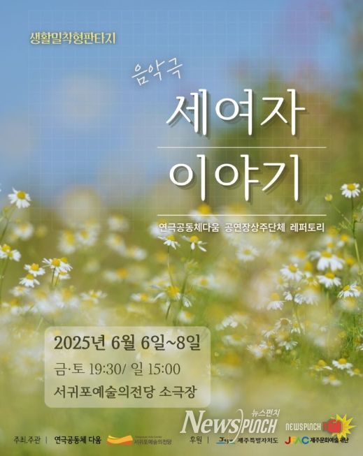 뉴스펀치 천세두 기자 | 서귀포시는 서귀포예술의전당에서 2025년 공연장 상주단체 육성 지원사업으로 연극공동체 다움의 음악극 '세 여자 이야기'를 오는 6월 6일부터 6월 8일까지 3회에 걸쳐 선보인다고 밝혔다.