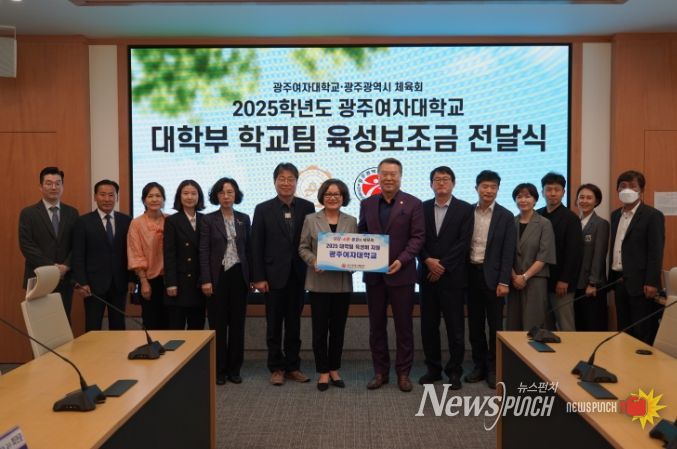 뉴스펀치 김길룡 기자 | 광주광역시체육회는 2025년 대학팀 학교운동부 육성지원 사업으로 광주여자대학교에 2,700만원을 지원하는 전달식을 개최했다.