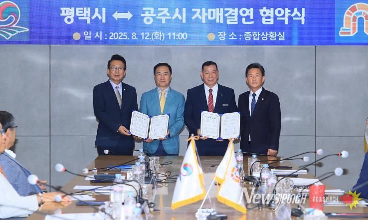 뉴스펀치 탁상훈 기자 | 평택시는 12일 평택시청에서 공주시와 자매결연협약을 맺고, 행정‧경제‧문화‧체육‧관광‧농업 등 다양한 분야에서의 교류 확대를 약속했다고 밝혔다.