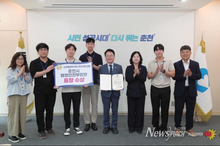 뉴스펀치 김보성 기자 | 춘천시가 행정안전부 주관 ‘2025년 디지털정부 혁신 유공’ 데이터기반행정 실태 점검 결과 향상도 우수기관으로 도내 유일 선정되면서 25일 장관 표창을 받았다.