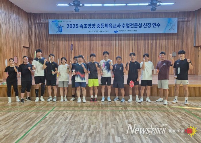 뉴스펀치 김보성 기자 | 속초양양교육지원청은 8월 29일 속초중학교 체육관에서 ‘중등 체육 교사 수업 전문성 신장 연수’를 운영했다.