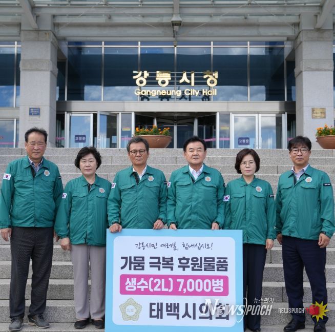 뉴스펀치 김보성 기자 | 태백시의회은 1일 강릉시 가뭄 극복을 위하여 의원들과 직원들이 모금한 성금 등으로 생수(2L) 7,000병을 기탁했습니다.