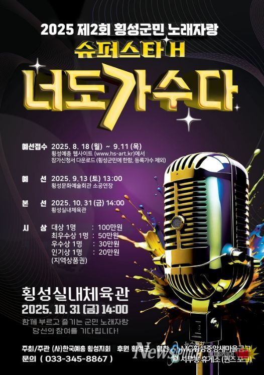 뉴스펀치 김보성 기자 | 횡성군민의 숨은 가창력을 뽐내는 축제의 장, ‘2025 제2회 횡성군민 노래자랑 슈퍼스타 H, 너도 가수다’가 오는 10월 31일 오후 2시에 열린다.