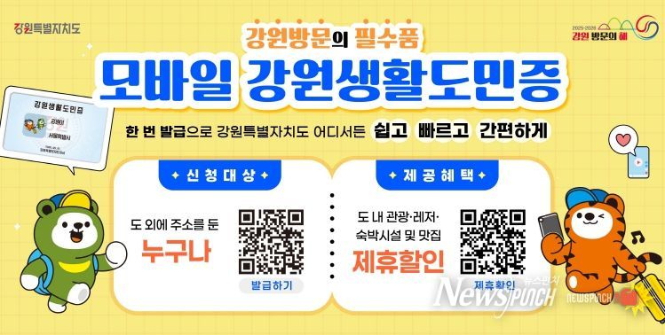 ‘강원생활도민 제도’는 강원도 외 거주자를 대상으로 모바일 강원생활도민증을 발급해 관광・숙박・음식점 등 제휴처의 할인혜택을 제공하는 제도다.