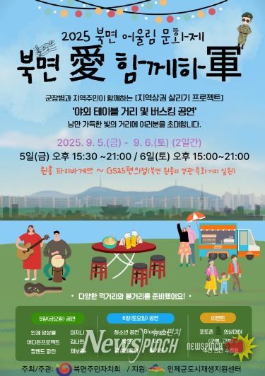 이번 행사는 △야외 테이블 거리 △버스킹 공연 △군복‧교복 대여 및 포토존 운영 등 군 장병과 주민이 함께 즐길 수 있는 프로그램이 준비된다. 가수 배기성, 채보훈, 어디든 프로젝트 등 초청 공연도 더해져 축제 분위기를 한층 고조시킬 예정이다. 북면주민자치회는 “나라를 위해 헌신하는 국군장병과 주민이 함께 어울릴 수 있는 화합의 장이 될 것”이라고 밝혔다.