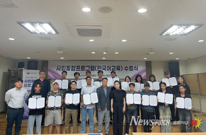 뉴스펀치 김보성 기자 | 속초해양산업단지 외국인 근로자 한국어 교육프로그램 수료식이 지난 4일 산업단지 지원센터 열렸다.