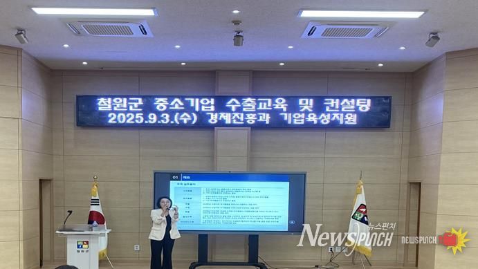 뉴스펀치 김보성 기자 | 철원군은 9월 3일 철원군 평생학습관에서 강원특별자치도 경제진흥원과관내 우수제품의 해외판로 확대를 위한 수출교육 및 컨설팅을 개최했다