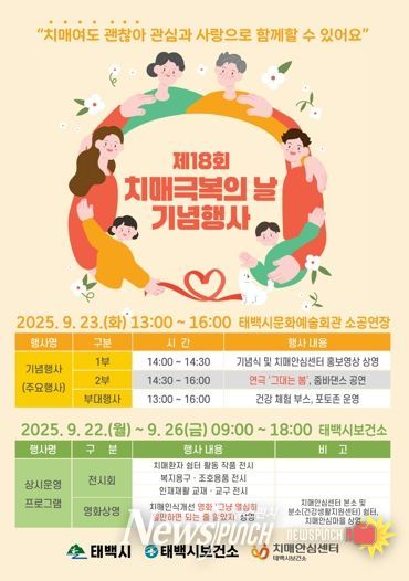 뉴스펀치 김보성 기자 | 태백시는 제18회 치매극복의 날을 맞아 오는 22일부터 26일까지 기념행사를 개최한다고 밝혔다.