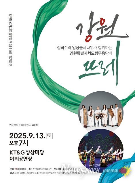 뉴스펀치 김보성 기자 | 강원특별자치도립무용단은 오는 9월 13일 오후 7시, 케이티앤지(KT·G) 상상마당 야외공연장에서 제11회 정기공연 '강원뜨레'를 선보인다고 밝혔다.