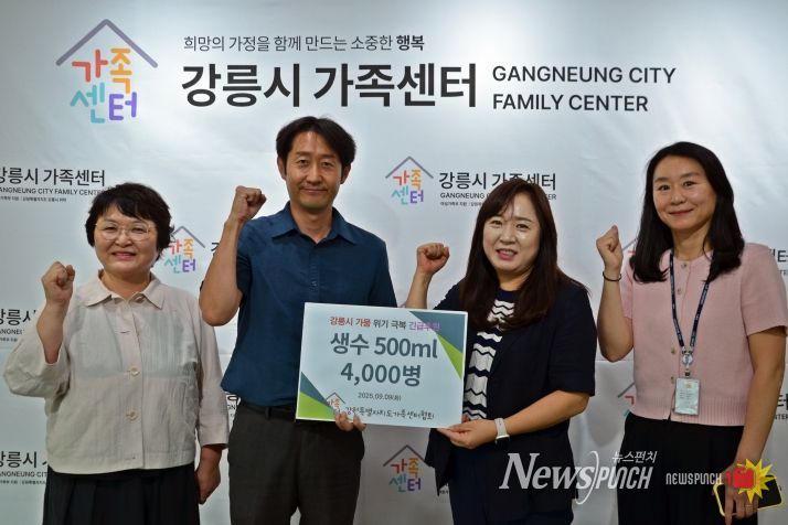 뉴스펀치 김보성 기자 | 강원특별자치도 가족센터협회(회장 정해복)는 극심한 가뭄으로 어려움을 겪고 있는 강릉시민을 위해 생수 4,000병을 기부한다고 밝혔다.