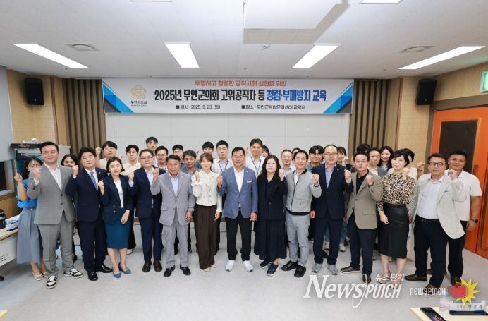 뉴스펀치 안철우 기자 | 무안군의회는 9월 23일 무안군복합문화센터 교육장에서 군의원과 의회사무과 공직자를 대상으로 청렴·부패방지 교육, 사회적 장애인식개선 교육, 4대 폭력 예방 교육을 실시했다.