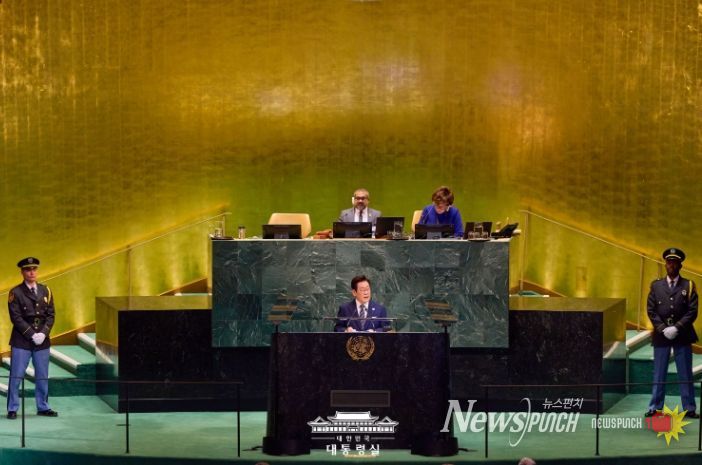 뉴스펀치 김용희 기자 | 이재명 대통령이 23일(현지시간) 최대 다자외교 무대인 제80차 유엔총회 기조연설을 통해 이재명정부의 한반도 정책 구상이 담긴 'E.N.D 이니셔티브'를 제시했다.