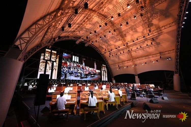 이날 무대에는 예술감독 김정원과 피아니스트 김홍기, 서형민, 손정범, 그리고 오디션을 통해 선발된 96명의 피아니스트가 함께했다. 이들은 100대의 피아노가 만들어내는 장엄한 대합주부터 피아노 앙상블의 아름다움, 고전부터 현대까지 아우르는 클래식 음악까지 선보이며 피아노의 무한한 매력을 뽐냈다.