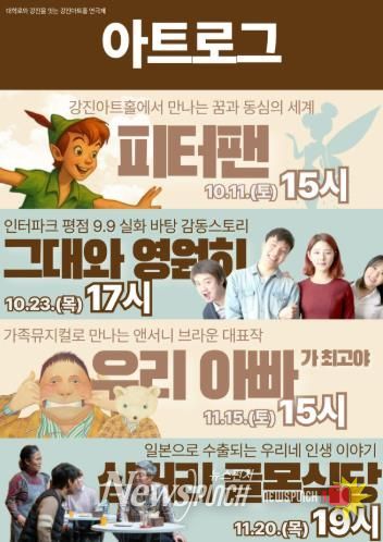 오는 10월 11일 ‘피터팬’을 시작으로 이어지는 ‘아트로그 가을 시즌’ 관람 신청은 강진군청 누리집 가입-소통과 참여-공연/행사 게시판에서 댓글로 참여할 수 있다.