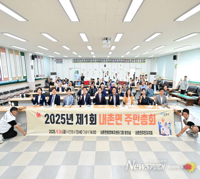 뉴스펀치 탁상훈 기자 | 포천시 내촌면주민자치회는 지난 26일 내촌면행정복지센터 회의실에서 주민 70여 명이 참여한 가운데 ‘2025년 제1회 내촌면 주민총회’를 성황리에 개최했다.