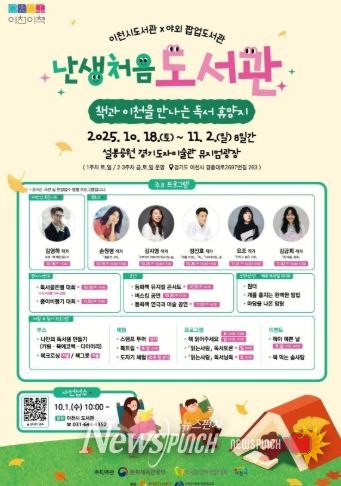 뉴스펀치 탁상훈 기자 | 이천시 도서관은 오는 10월 18일부터 경기도자미술관에서 열리는 ‘난생처음 도서관’의 사전 신청 접수를 10월 1일 10시부터 시작한다고 밝혔다. ‘난생처음 도서관’은 시민 누구나 야외에서 책과 함께 다양한 체험을 즐길 수 있도록 마련된 특별한 야외 팝업도서관이다.