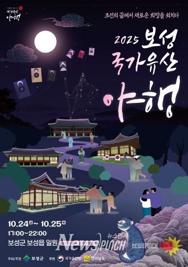 뉴스펀치 김길룡 기자 | 보성군은 오는 10월 23일과 24일 이틀간 오후 5시부터 10시까지 보성읍 일원에서 ‘2025 보성 국가유산 야행’을 개최한다고 밝혔다.