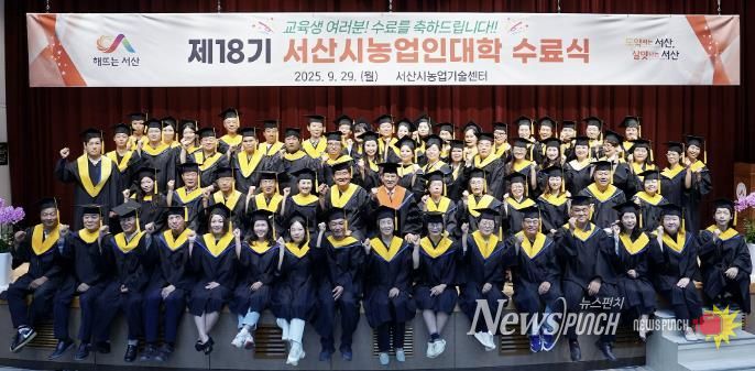 뉴스펀치 김길룡 기자 | 충남 서산시는 지난 29일 농업기술센터 농업인교육관에서 제18기 서산시농업인대학 수료식이 개최됐다고 밝혔다.