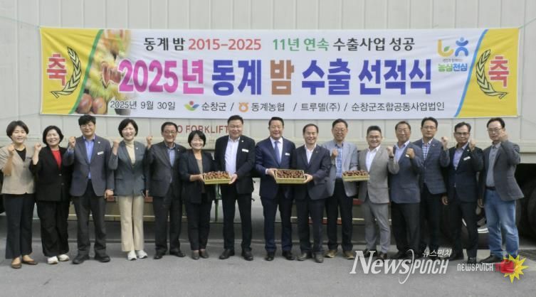 뉴스펀치 김길룡 기자 | 순창군 동계농협이 30일 동계농협 농산물산지유통센터(APC)에서 밤 중국 수출을 위한 선적식을 개최하며, 본격적인 해외 시장 공략에 나선다.
