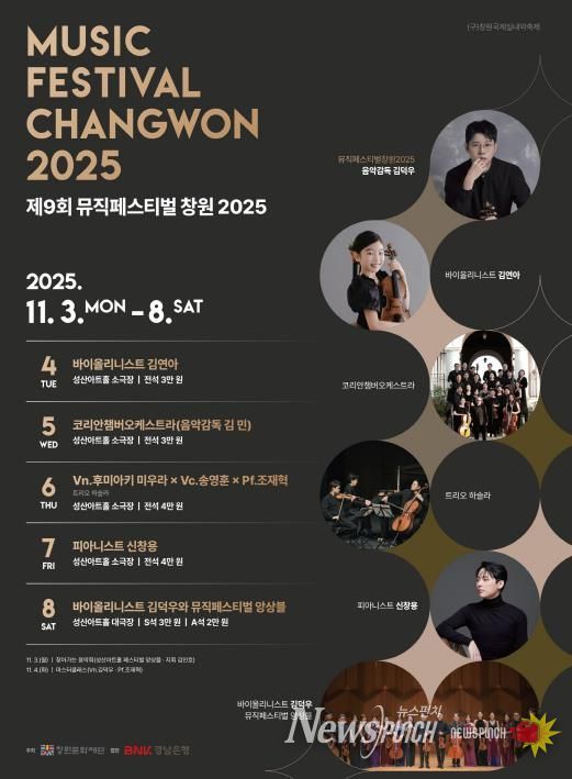 뉴스펀치 김길룡 기자 | 올해 축제는 그동안 ‘창원국제실내악축제’라는 이름으로 이어져 온 전통을 계승하면서, 명칭을 ‘뮤직페스티벌창원2025’로 변경해 프로그램 범위를 확대했다.