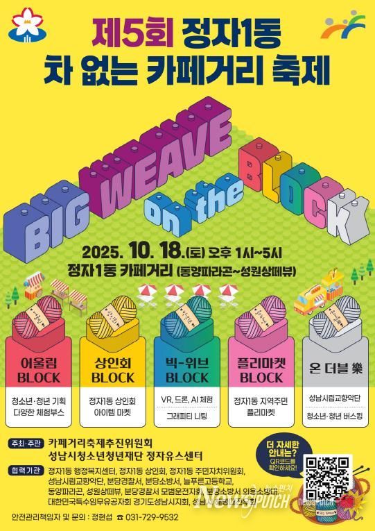 뉴스펀치 탁상훈 기자 | 성남시 분당구 정자1동 카페거리가 오는 10월 18일 하루 동안 시민들의 발걸음과 음악으로 채워진다. 카페거리축제추진위원회와 성남시청소년청년재단 정자유스센터가 주관하는 '제5회 정자1동 차 없는 카페거리 축제'가 이날 오후 1시부터 열린다.
