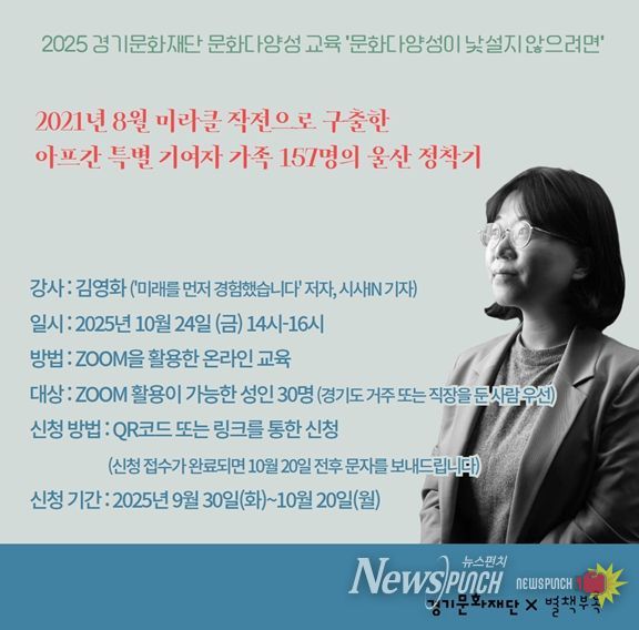뉴스펀치 탁상훈 기자 | 다가오는 10월 24일, 경기문화재단은 문화다양성 가치를 이해하고 관련 사례를 탐구하기 위한 문화다양성 온라인 교육 〈미래를 먼저 경험했습니다〉를 실시한다.