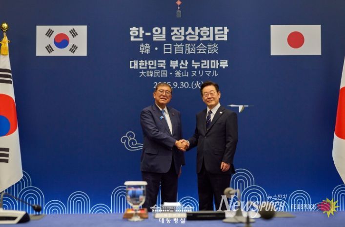 뉴스펀치 김용희 기자 | 이재명 대통령은 9월 30일 '이시바 시게루(石破 茂)' 일본 총리와 부산에서 한일 정상회담을 가졌다. 양 정상은 한일 간 실질 협력 강화 방안과 지역 및 글로벌 차원에서의 협력 필요성에 대해 폭넓고 심도 깊은 의견을 교환했다.