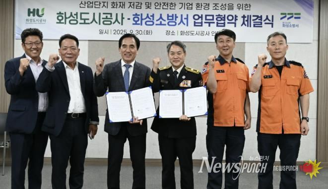 뉴스펀치 탁상훈 기자 | 화성도시공사는 지난 9월 30일 화성소방서와 산업단지 입주기업의 화재 피해 최소화 및 안전한 기업환경 조성을 위한 업무협약(MOU)을 체결했다고 밝혔다.