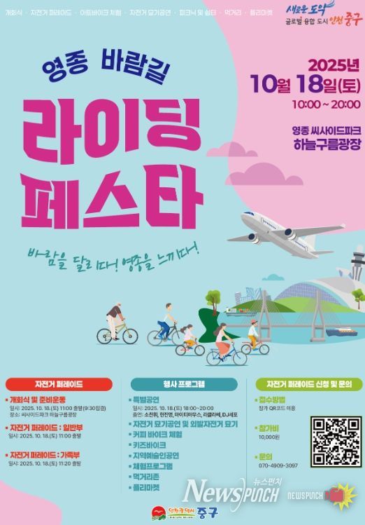 뉴스펀치 탁상훈 기자 | 인천시 중구는 축제의 계절 가을을 맞아 오는 18일 영종 씨사이드파크 일원에서 ‘영종 바람길 라이딩 페스타’를 개최한다.