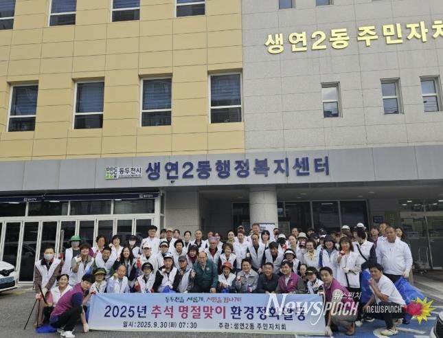 뉴스펀치 탁상훈 기자 | 동두천시 생연2동 행정복지센터는 9월 30일 추석을 앞두고 사회단체 회원과 동 직원 등 80여 명이 참여한 가운데 관내 환경정화 활동을 실시했다.