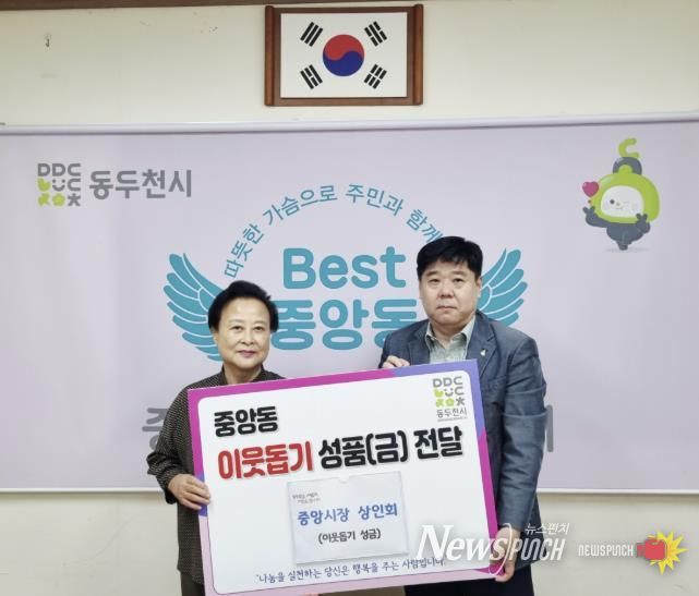 뉴스펀치 탁상훈 기자 | 동두천시 중앙시장 상인회는 9월 30일 추석을 앞두고 이웃돕기 성금 30만 원을 중앙동 행정복지센터에 기탁했다.