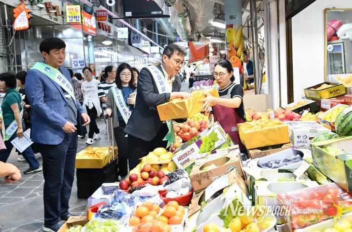 뉴스펀치 탁상훈 기자 | 수원특례시 영통구는 지난 9월 30일, 다가오는 2025년 추석 명절을 앞두고 영통구 유일의 전통시장인 구매탄시장을 방문해‘전통시장 장보기 행사 및 물가안정 캠페인’을 진행했다.
