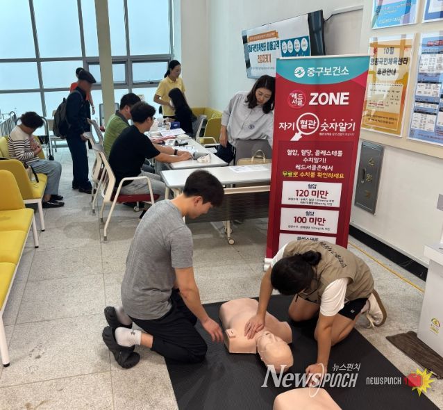 뉴스펀치 탁상훈 기자 | 인천중구시설관리공단과 중구보건소는 지난 9월 17일과 9월 24일 영종국민체육센터에서 ‘심뇌혈관질환 예방 관리 및 건강 증진을 위한 합동 캠페인’을 진행했다.