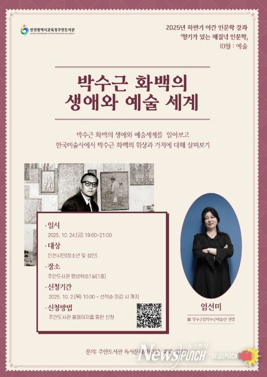 주안도서관 관계자는 “이번 강좌가 시민들이 도서관에서 문화를 향유하는 계기가 되기를 바라며, 예술과 한국미술에 관심 있는 시민들의 많은 참여를 기대한다”고 전했다.