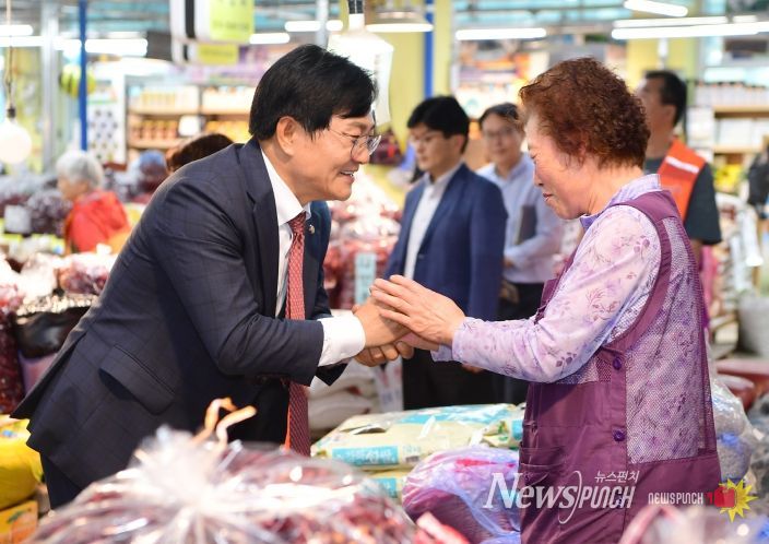 뉴스펀치 탁상훈 기자 | 박용철 강화군수는 지난 30일 추석 명절을 맞아 지역 전통시장과 상점가를 방문해 상인들과 소통하며 현장의 목소리를 들었다.