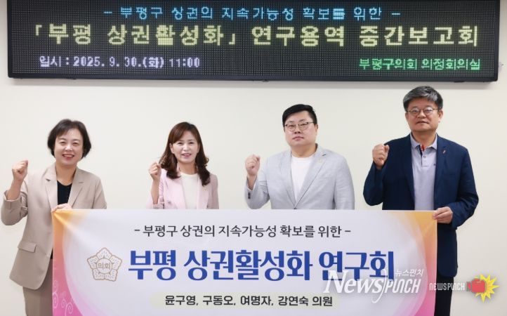 뉴스펀치 탁상훈 기자 | 인천시 부평구의회 의원연구단체인 부평 상권활성화 연구회가 9월 30일 ‘부평 상권활성화 연구 용역’ 중간보고회를 개최했다고 9월 30일 밝혔다.
