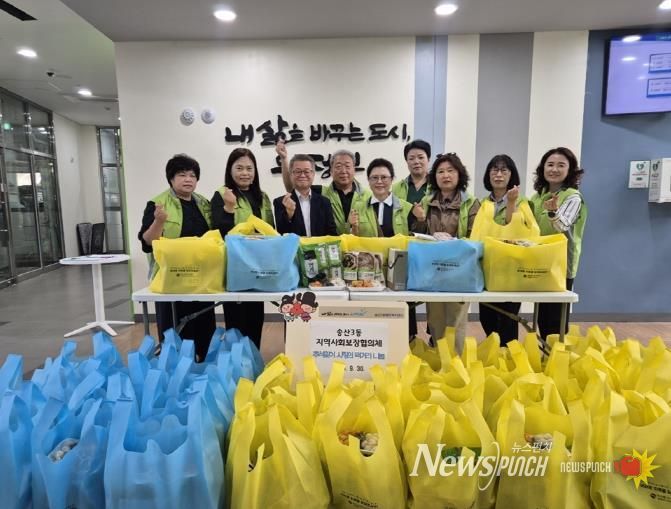 뉴스펀치 탁상훈 기자 | 의정부시 송산3동행정복지센터는 9월 30일 송산3동 지역사회보장협의체가 추석을 맞아 저소득 취약계층 100가구를 대상으로 ‘사랑의 먹거리 나눔 행사’를 진행했다고 밝혔다.