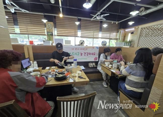 뉴스펀치 탁상훈 기자 | 수원시 팔달구 지동 지역사회보장협의체는 지난 30일 관내 식당에서 저소득 홀몸 어르신들을 초청해 따뜻한 식사를 함께하며 환절기 건강을 살피고 정서적으로 교류하는 시간을 가졌다.