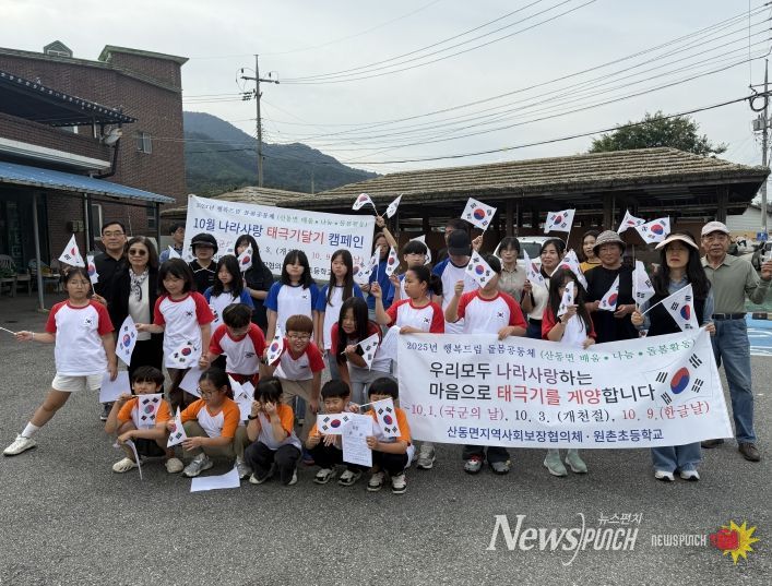 뉴스펀치 김길룡 기자 | 전남 구례군 산동면 지역사회보장협의체(공공위원장 임채덕 산동면장, 민간위원장 유영만)와 원촌초등학교는 지난 9월 30일, 원촌초등학교~산동오일장 일원에서‘10월 나라사랑 태극기 달기 캠페인’을 공동 진행했다.