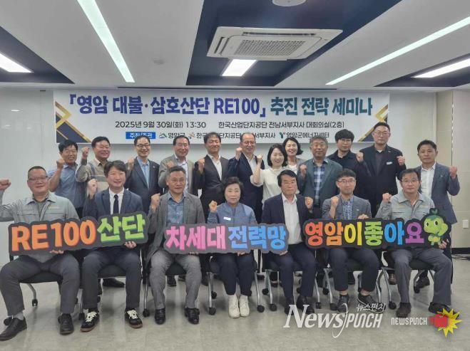 뉴스펀치 김길룡 기자 | 영암군이 9/30일 한국산업단지공단 전남서부지사에서 ‘대불·삼호산단 RE100 추진 전략 세미나’을 개최했다.