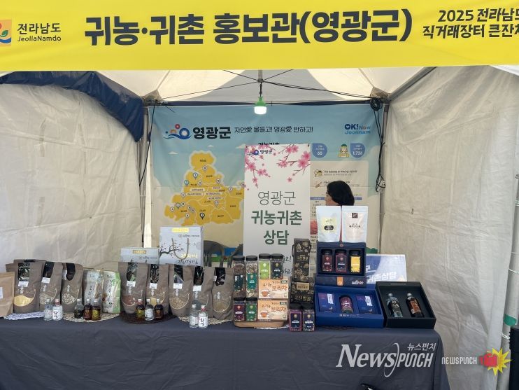 뉴스펀치 김길룡 기자 | 영광군은 ‘2025 전라남도 직거래장터 큰잔치’ 현장에서 도시민을 대상으로 귀농·귀촌 홍보부스를 운영했다. 부스에서는 귀농·귀촌 준비에 필요한 제도와 절차, 교육 과정, 주거·생활 등 정주 정보를 중심으로 안내했다.