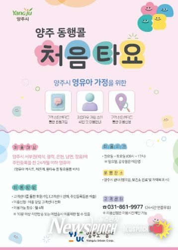 뉴스펀치 탁상훈 기자 | 양주시가 오는 10월 20일부터 읍·면 지역 24개월 이하 영유아를 동반한 보호자 이동지원차량 ‘처음타요’를 시범 운영한다.