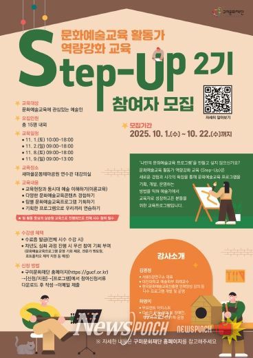 뉴스펀치 김길룡 기자 | (재)구미문화재단은 문화예술교육 활동가 역량강화 교육 프로그램 'Step-Up' 2기 참여자를 오는 10월 1일부터 22일까지 모집한다고 밝혔다.