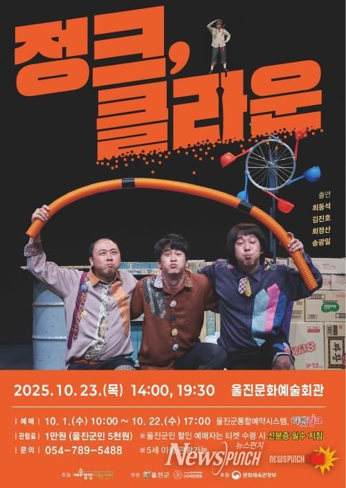 뉴스펀치 김길룡 기자 | 울진군은 오는 10월 23일 오후 14시, 19시 30분, 울진문화예술회관에서 2025 공연예술 유통 지원사업에 선정된 코믹 마임극‘정크, 클라운’공연을 두차례 선보인다.