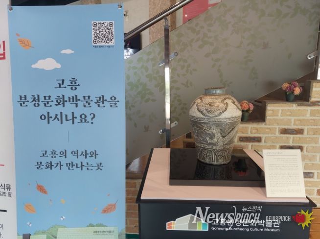 뉴스펀치 김길룡 기자 | 고흥군은 10월부터 12월까지 고흥작은영화관과 녹동공용버스터미널에서 고흥의 흙과 분장토, 유약, 철화안료를 사용해 복원한 분청사기를 선보이며, 관광객과 지역 주민들에게 고흥분청사기 도자문화의 가치를 알린다고 밝혔다.