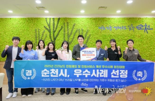 뉴스펀치 김길룡 기자 | 순천시가 전라남도 도민행복소통실에서 주관한 '2025년 민원제도 개선 우수사례' 공모에서 우수사례로 선정되어, 지난 1일 시상식 및 사례발표를 진행했다.