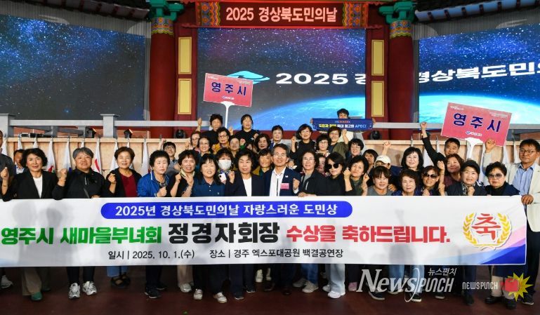 뉴스펀치 김길룡 기자 | 영주시는 10월 1일 경주 엑스포대공원 백결공연장에서 열린 ‘2025년 도민의 날 기념식’에서 정경자 영주시 새마을부녀회장이 ‘영주시 자랑스러운 도민상’을 수상했다고 밝혔다.