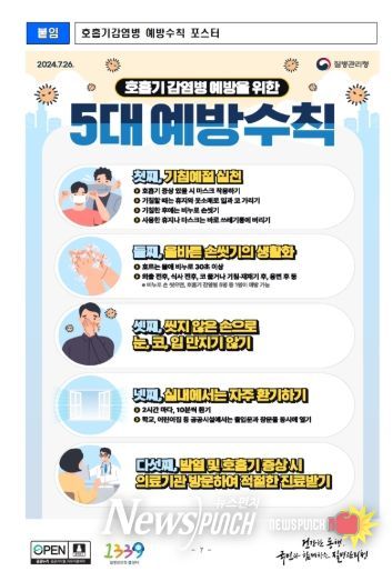 뉴스펀치 탁상훈 기자 | 김포시보건소는 다가오는 추석 연휴를 맞아 귀성·귀경길 이동과 가족 모임이 늘어날 것으로 예상됨에 따라 감염병 예방을 위한 개인 방역 수칙 준수를 당부했다. 이번 연휴 기간이 시민 안전을 지키는 중요한 시기라 강조하며, 생활 속 실천이 지역사회 건강으로 이어진다고 설명했다.