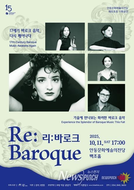 뉴스펀치 김길룡 기자 | 안동문화예술의전당은 다양한 장르의 특별기획공연으로 수준 높은 문화예술을 접할 수 있는 기회를 확대하고 있다. 10월 11일 금요일 오후 5시 안동문화예술의전당 백조홀에서는 'Re:baroque(리:바로크) 다시 깨어나는 바로크 음악' 무대가 열린다.