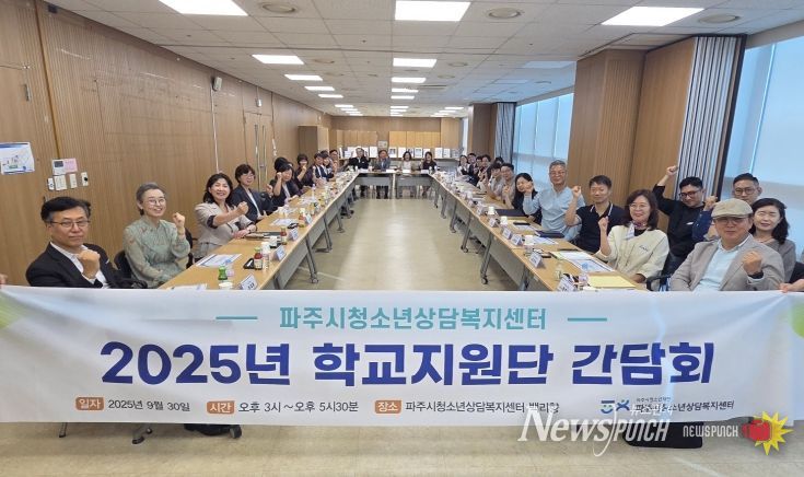 뉴스펀치 탁상훈 기자 | (재)파주시청소년재단 파주시청소년상담복지센터(센터장 장문희)는 9월 30일 오후 3시, 센터 내 백리향에서 관내 초·중·고 33개교 교장을 대상으로 '2025년 청소년안전망 학교지원단 간담회'를 개최했다.